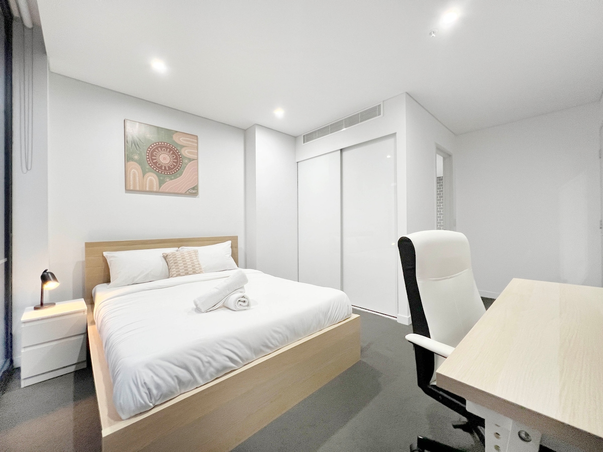 Entra en un apartamento moderno y lleno de luz diseñado para la comodidad y la funcionalidad. 1• Dormitorio principal: cama tamaño queen con baño privado. Segundo dormitorio: una cama doble + una cama individual, ideal para estancias familiares o en grupo. 2• Estacionamiento gratuito incluido para un auto. 3• A cinco minutos a pie de la estación de Wolli Creek, a solo 10 minutos del centro de Sídney y a 1 parada del aeropuerto. 4• Woolworths y el supermercado Aldi, tiendas de comestibles asiáticos, cafés y restaurantes populares están a pocos minutos a pie.
