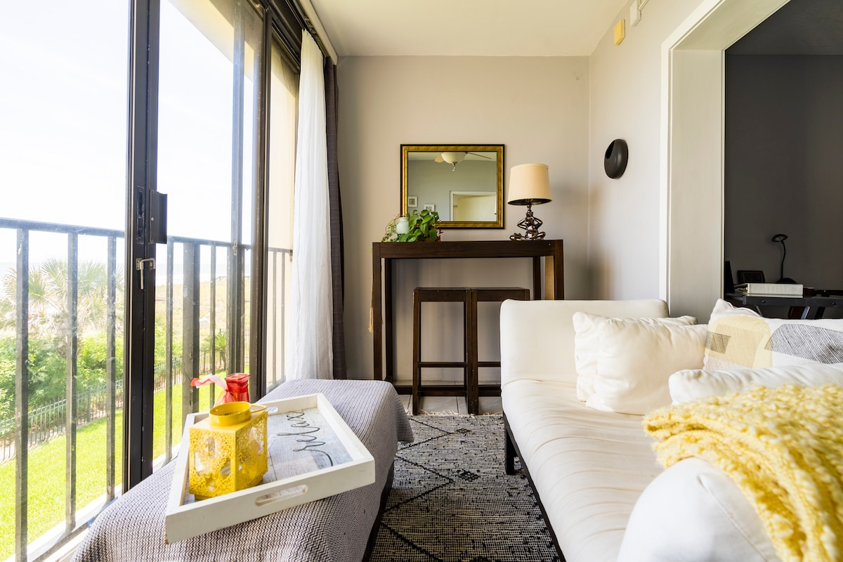 Oasis frente al mar está ubicado en el corazón de Jax Beach. Es la escapada perfecta frente al mar con impresionantes vistas y acceso directo a la playa a solo unos pasos. Este condominio frente al mar en el quinto piso superior, 2 camas/1 baño, ha sido completamente renovado y está equipado con todo lo que necesitas. Relájate en el balcón privado mientras bebes tu café de la mañana mientras escuchas las olas. Esta unidad está cerca de todo lo que necesitas: cafeterías, restaurantes y tiendas. Mayo Clinic está a 5 minutos.