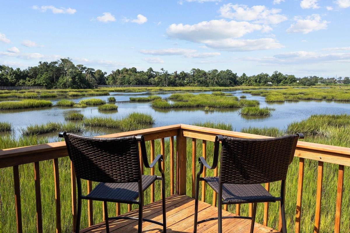 Bienvenido a la cabaña costera frente al mar ubicada en un arroyo de mareas aislado que conduce a la vía fluvial intracostera. Captura impresionantes vistas en el muelle privado observando la naturaleza, pescando o relajándote en la hamaca cercana. Este refugio costero es la escapada perfecta para que tú y tu familia/amigos creéis recuerdos interminables junto a la hoguera, asando ostras, en el bar al aire libre y en la sala de juegos. Estamos ubicados: - A 400 pies: rampa privada para botes. - A 7 millas: Wrightsville Beach. - A 11 millas: centro de Wilmington. - A 8 km: Ogden Park.
