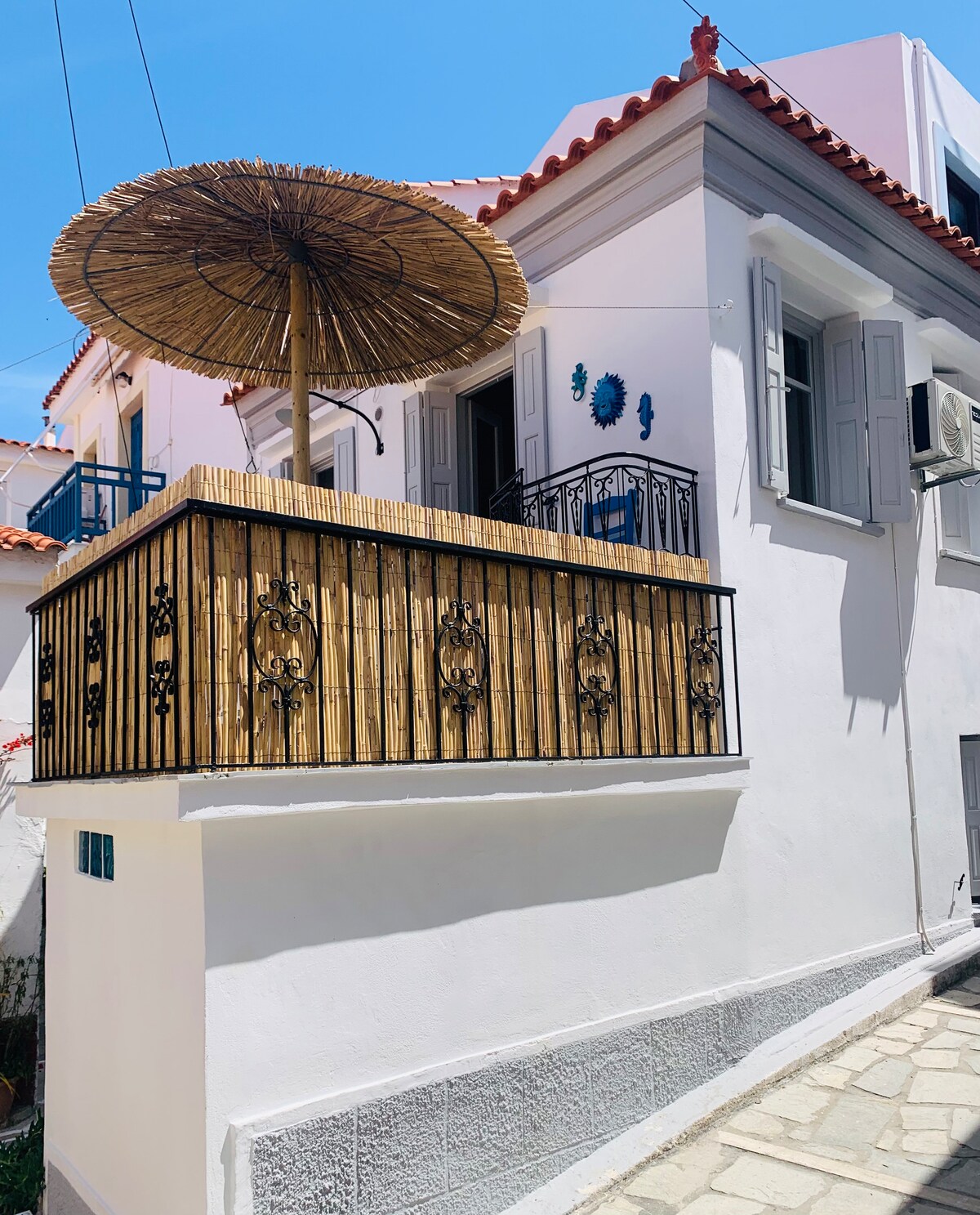Un apartamento precioso en el pueblo de Ireon en Samos. Justo al lado de la playa , te invita a encontrar playas ocultas, hermosas tiendas y cocinas únicas. Ven y descubre Samos y quédate en este tranquilo apartamento. En el interior encontrarás una sala de estar muy bonita (sofá que se convierte en una cama doble), 1 dormitorio y 1 baño con lavadora y 2 sofás. Todo esto combinado con un balcón con vistas al mar.