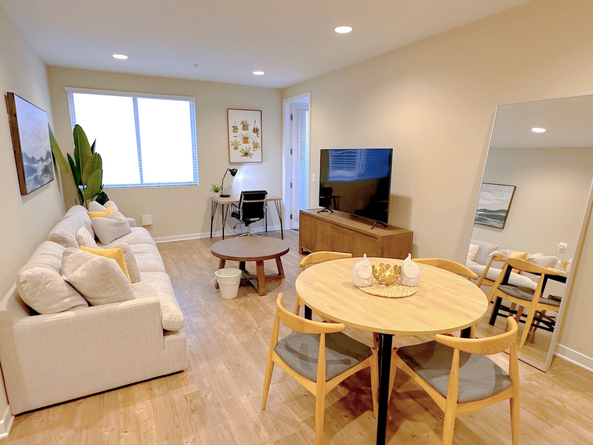 ¡Te damos la bienvenida a nuestro elegante refugio de 1 dormitorio! Ubicado en el corazón de Santa Ana/South Coast, este elegante espacio cuenta con un diseño contemporáneo, muebles elegantes y excelentes servicios. Ideal para personas que viajan solas o en pareja que buscan una escapada urbana de moda, nuestro apartamento cuenta con una cómoda cama tamaño king, una cocina totalmente equipada y una acogedora sala de estar perfecta para relajarse. Con un cómodo acceso a restaurantes y tiendas locales, disfrutarás de lo mejor de la vida en la Costa Sur durante tu estancia.