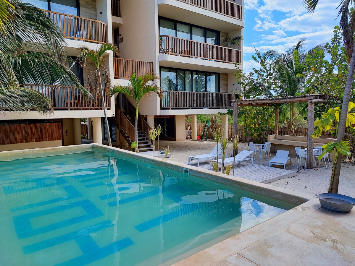 Déjate enamorar por este loft amplio y elegante en la mágica isla de Holbox, un refugio pensado para vivir momentos especiales en un ambiente privado y relajado. Loft de dos niveles, una terraza amueblada, un solárium con camastros y dos pérgolas de áreas comunes. Ubicado a solo dos cuadras de la playa y a diez minutos del centro de la isla. Te encuentras en un condominio de nueve departamentos, donde solamente comparten las áreas comunes.