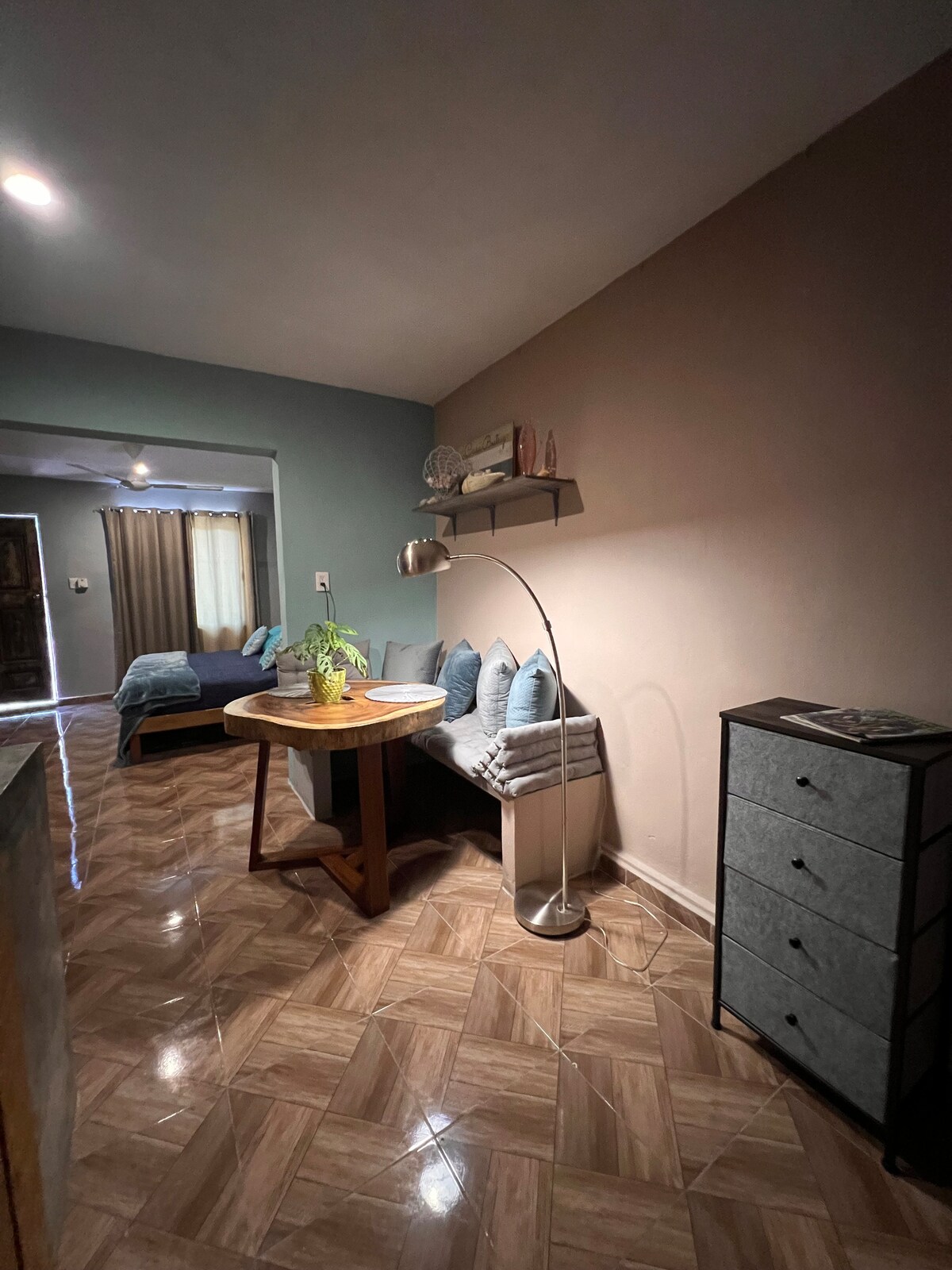 Maravilloso estudio para una o dos personas(no niños) en una zona céntrica y tranquila de Cancun. Cómodo, luminoso y muy bonito(nuevo). Tiene todo lo esencial para tu estancia en Cancun: TV con cable y Netflix, Aire Acondicionado, Wifi, Cocineta con refrigerador, alberca, top roof y mas amenidades. A pocos minutos caminando hay plaza comercial, restaurante, tiendas y transporte publico a dos calles para la ir a la zona hotelera y playas publicas. Todo lo necesario para sentirse como en casa.