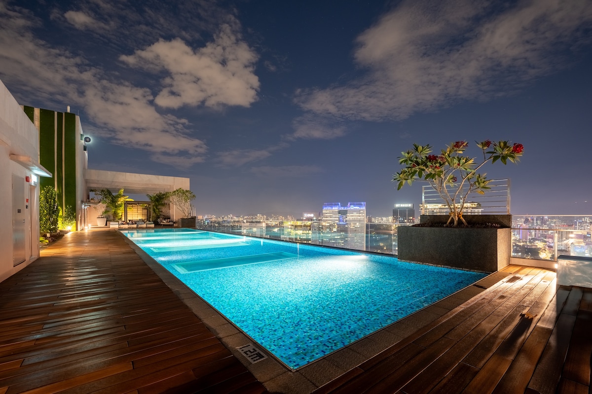 ¡Suite de 1 dormitorio ubicada dentro del Triángulo de Oro de KL! Céntrico, a 5-10 minutos de: • Famosos centros comerciales en la zona de Bukit Bintang: - Berjaya Times Square, LaLaport BBCC - Pavilion, Starhill. - Lot 10, Sg Wang - Suria KLCC. • Calle de bares Changkat Bukit Bintang. • Calle gastronómica Jalan Alor • Torre KL. • Barrio chino. • Monorraíl y LRT (estación de Hang Tuah). • Terminal de autobuses de KL (Pudu Sentral). Nuestro alojamiento es muy adecuado para familias, parejas o grupos de amigos. Nuestras piscinas infinitas tienen vistas a la impresionante torre Merdeka 118.