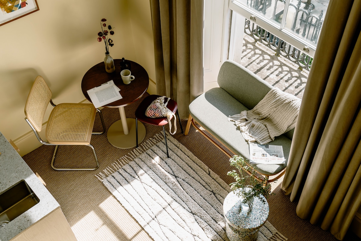 Nuestro estudio con altillo tiene todo lo que necesitas. Un espacio acogedor, solo para ti. Todo tiene su lugar en este estudio inteligentemente diseñado. Totalmente amueblado con tu propia cocina, baño privado y una zona de altillo para dormir. Es una vivienda de dos pisos, por lo que puedes relajarte abajo y descansar arriba. Todas las estancias incluyen una barra de desayuno diaria, «viernes de vino» con el administrador de la casa y eventos semanales de bienestar que alternan entre yoga y un club de corredores del vecindario.