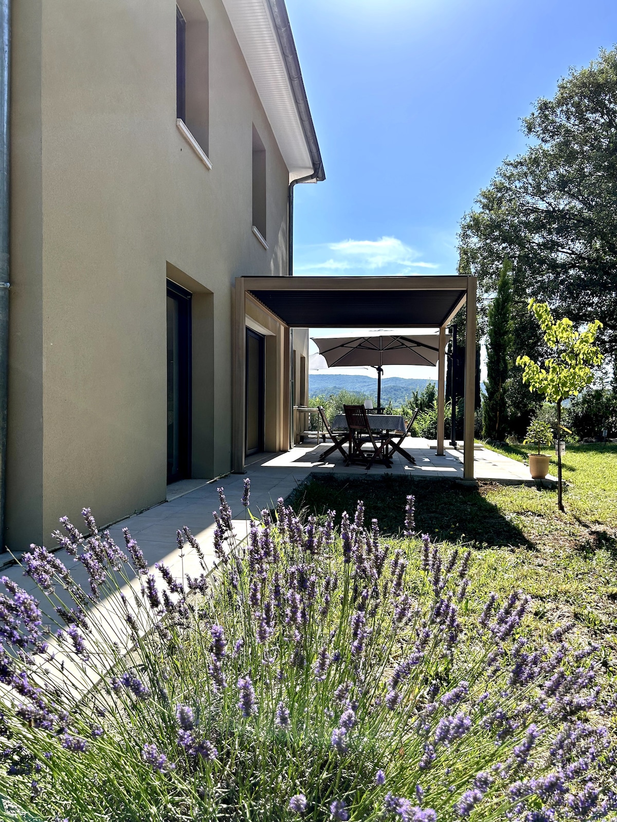 Casa muy luminosa de 165 m2 en una parcela de 2500 m2 con vistas a un hermoso pueblo provenzal con vistas panorámicas a la campiña de los alrededores. La casa es muy cómoda con 4 hermosas habitaciones, sus 3 baños, una cocina completa (cortadora de fiambre, thermomix TM6…) El lugar es extremadamente tranquilo con un vecindario distante sin molestias, gracias también por respetar la tranquilidad del pueblo, especialmente por la noche.