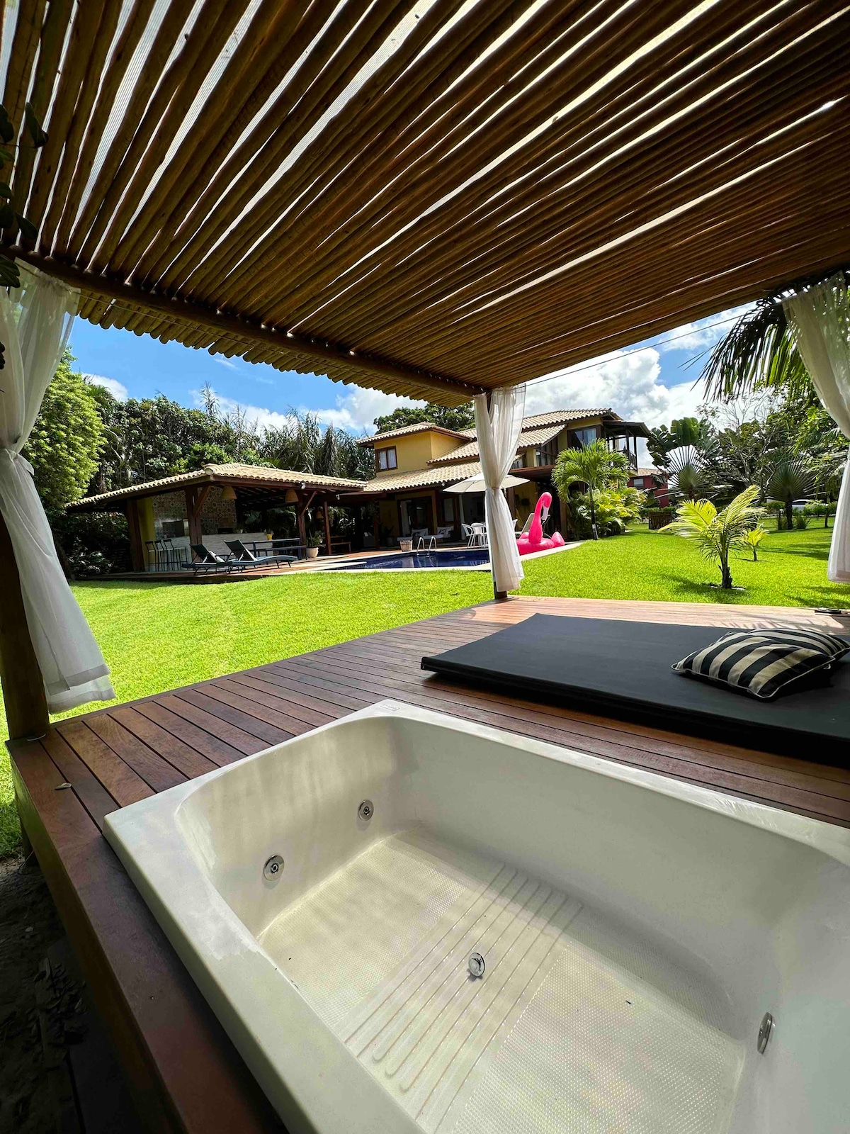 Casa Japi es una casa de alto estándar ubicada en el mejor condominio del complejo hotelero: Casas de Sauípe. Somos los únicos con servicio de puesto en la playa y acceso a la playa a pie Estamos al lado del club. La casa dispone de 4 suites con aire acondicionado y 1 habitación de servicio, cocina equipada, sala de estar, balcón gourmet, jardín, piscina, columpio, tobogán, zona zen, bañera de hidromasaje, barbacoa, congelador, Air Fryer, Wi-Fi de alta velocidad, TV y ropa de cama completa.