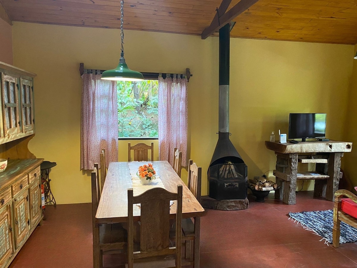 RETIRO ÚNICO EN MANTIQUEIRA CON UNA VISTA PRIVILEGIADA DE PEDRA DO BAÚ Acogedora casa, decorada con recuerdos y cariño Chimenea, TV inteligente Silencio y aire fresco Experiencias con senderos, cascadas y fogatas bajo el cielo estrellado *Wi-Fi Starlink* Cocina completa con estufa de leña y Nespresso para preparar comidas deliciosas. Gran balcón, hamaca, huerto y lago Agua de mina y paz A 33 km de Campos do Jordão, en una región rica en gastronomía y recorridos ecológicos El equilibrio perfecto entre comodidad y naturaleza.