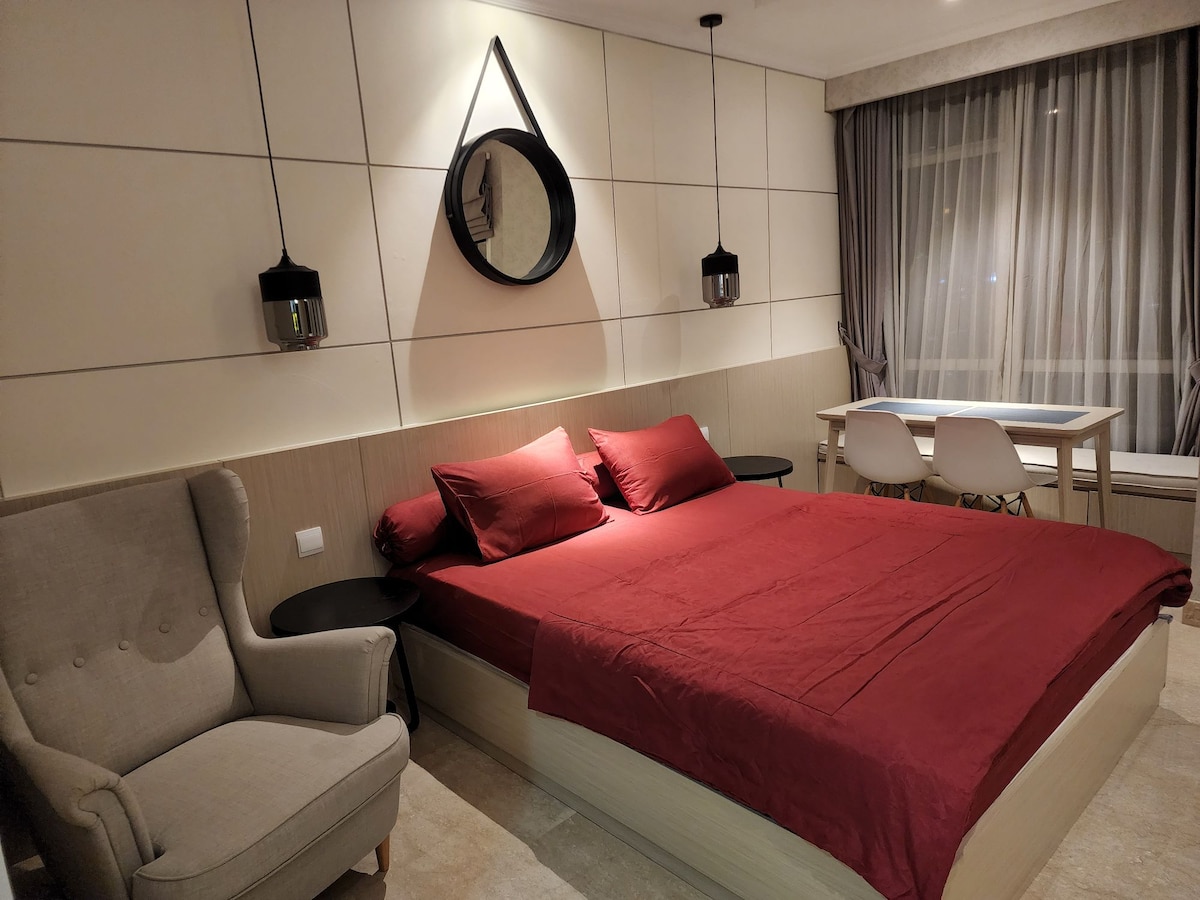 Ubicada en Benhil, esta propiedad de inspiración japonesa está bien equipada con una televisión inteligente (que incluye Netflix, Disney +, HBO GO), cocina completa con nevera, microondas, dispensador de agua y estufa eléctrica, y servicios y aperitivos bien surtidos. Disfruta de tu noche en nuestra cama tamaño queen con una gran ventana y un amplio balcón. Trabaja y cena en nuestra mesa de madera con una excelente conexión wifi. También hay un futón oculto adicional disponible. También se proporciona: piscina infinita, sauna y gimnasio, parque infantil.
