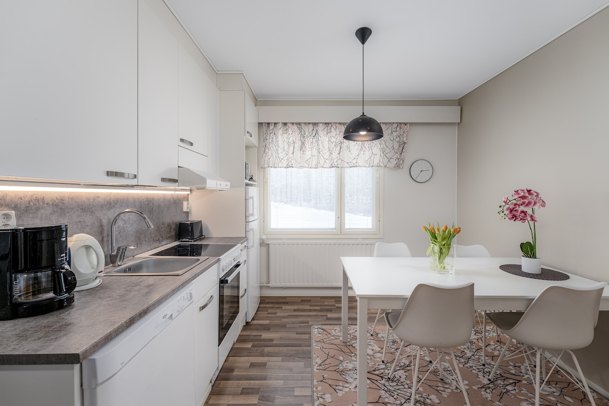 ACOGEDOR DEPARTAMENTO MODERNO CERCA DEL MAR A UNOS 2 KM DEL CENTRO DE KOKKOLA CON TODOS LOS SERVICIOS El departamento está totalmente equipado. En el apartamento se pueden encontrar sábanas, secador de pelo, plancha y toallas, así como estacionamiento gratuito con poste de calefacción.