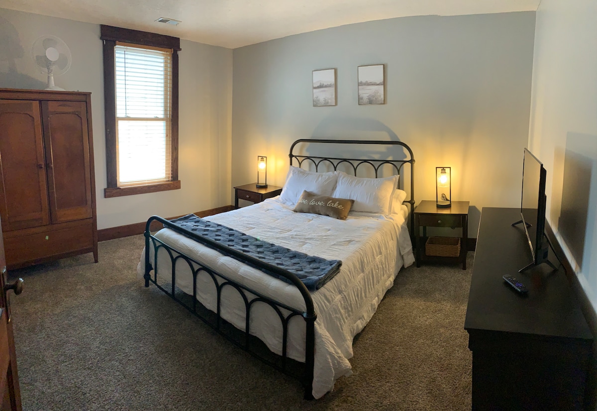 Relájate en esta escapada única con temática de Kentucky Bourbon a solo 10 minutos del lago Cumberland a través del puerto deportivo de Jamestown. La Casa del Bourbon tiene dos camas tamaño queen en sus propios dormitorios y un sofá cama de tamaño completo con 2 baños completos. Cuenta con una cocina totalmente equipada, pero está a solo 5 minutos de Jamestown Square, con 3 deliciosas opciones de restaurantes diferentes. Disfruta de la paz de estar en el campo en el patio trasero frente al bosque, con una fogata en el pozo de fuego.