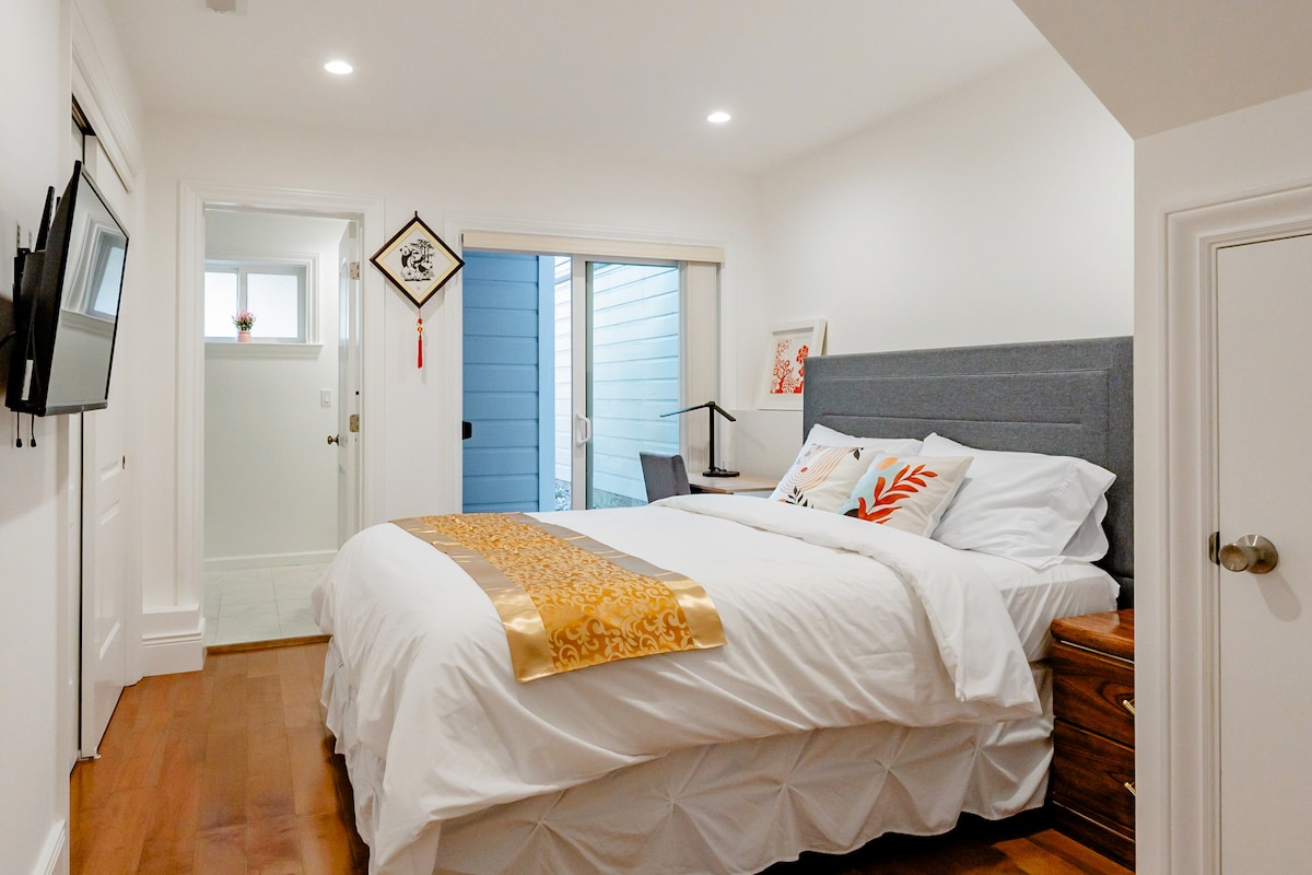 Apartamento privado de una habitación con balcón y una nueva remodelación de alta gama. En el corazón de Inner Richmond, a poca distancia del parque Golden Gate, a pasos del transporte público, restaurantes y bares divertidos. Ten en cuenta que se trata de una unidad alojada. Para tu comodidad y tranquilidad, el anfitrión vive en el último piso y está disponible si necesitas algo durante tu estancia. Los únicos espacios compartidos son los pasillos comunes: tu suite es totalmente privada.