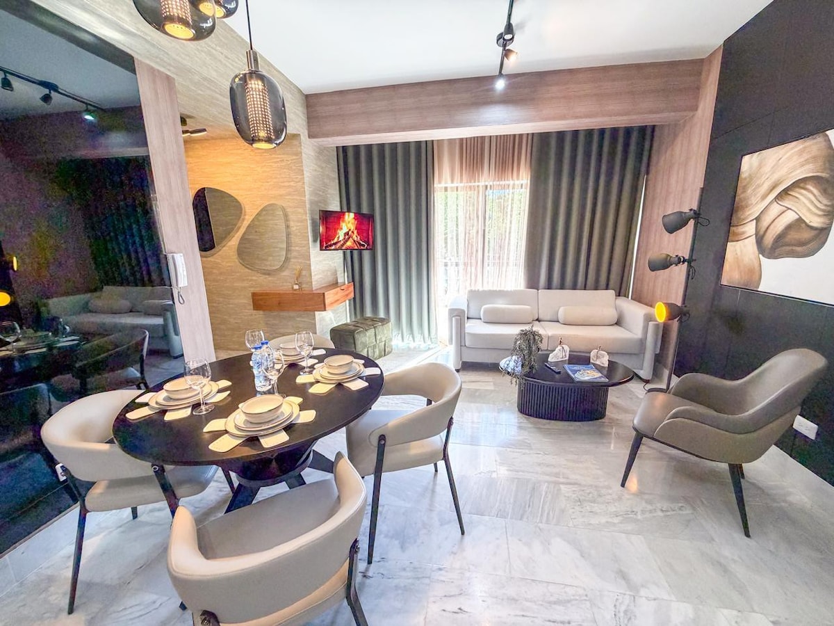 Apartamento tipo duplex para el descanso o la aventura. Concepto minimalista elegante y espacioso. Vista hermosa hacia las piscinas y las montañas. Habilitado para familia de seis miembros. Habitación amplia para pareja con litera disponible para niños pequeños. Bańo con todos los servicios. En la sala dos sofás-camas. Cocina completa con lo necesario para preparar sus comidas. Balcón con butacas ergonómicas para disfrutar de los paisajes, la lectura y una amena conversación.