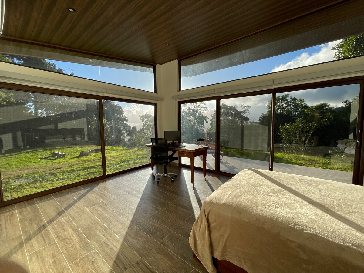 Muy moderno y espacioso. ¡La habitación incluye su propia terraza con entrada privada! Hermosa vista del estanque con el volcán Baru como fondo. El lugar ideal para que disfrutes de tu taza de café por la mañana escuchando a las aves. ¡Tienes tu propia nevera privada,estufa, un pequeño horno de encimera, microondas y cafetera en tu suite! Además de todos los elementos básicos (café, sal, pimienta, aceite de oliva, etc.), ollas y sartenes. ¡Ven a disfrutar y relájate en este lugar tan romántico! ¡También contamos con internet de alta velocidad!