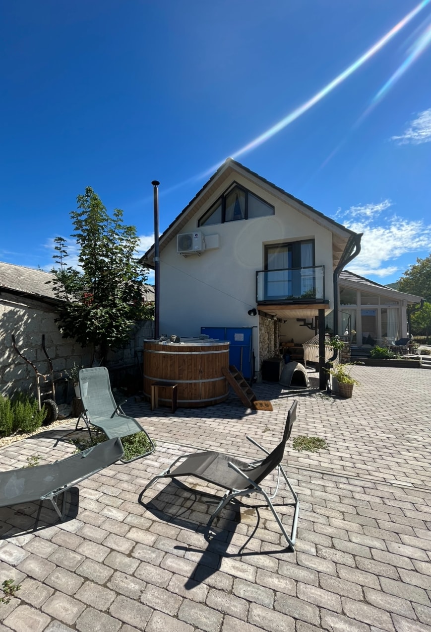 Ubicado en un pequeño pueblo abrazado por las colinas, toda la familia lo disfrutará . Un gran patio compartido, amplia habitación, baño privado y cocina esperan a tus encantadores huéspedes. Los muebles de toda la casa son únicos, auténticos, que coinciden con el estilo de la casa, pero al mismo tiempo cómodos, con equipos adecuados para las necesidades modernas. También hay tocino y barbacoa en el jardín. El espacioso y pequeño apartamento también es ideal para 3 personas. Proporciona una buena temperatura fresca en verano debido a las paredes gruesas.