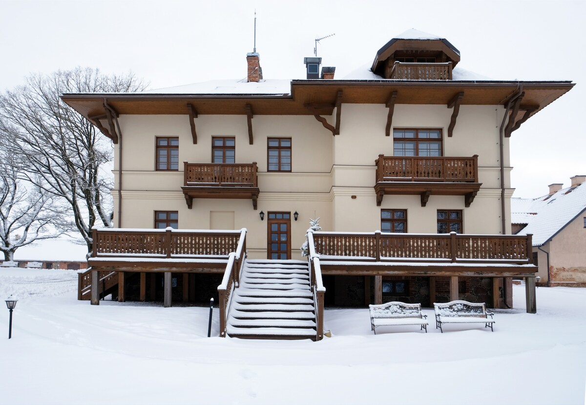 La casa de huéspedes "Villa Rose & SPA" está en un hermoso lugar en medio del bosque a pocos kilómetros de Jelgava y ofrece un gran descanso para todos los que quieran relajarse de las prisas diarias, disfrutar de tratamientos de SPA o celebrar una celebración especial. La casa de 200 m2 de ancho tiene una sala de chimenea, una cocina con un comedor, una sauna, un barril de cedro de vapor, una bañera de hidromasaje al aire libre, así como tres dormitorios y todas las comodidades necesarias para hacer que sus vacaciones sean inolvidables.