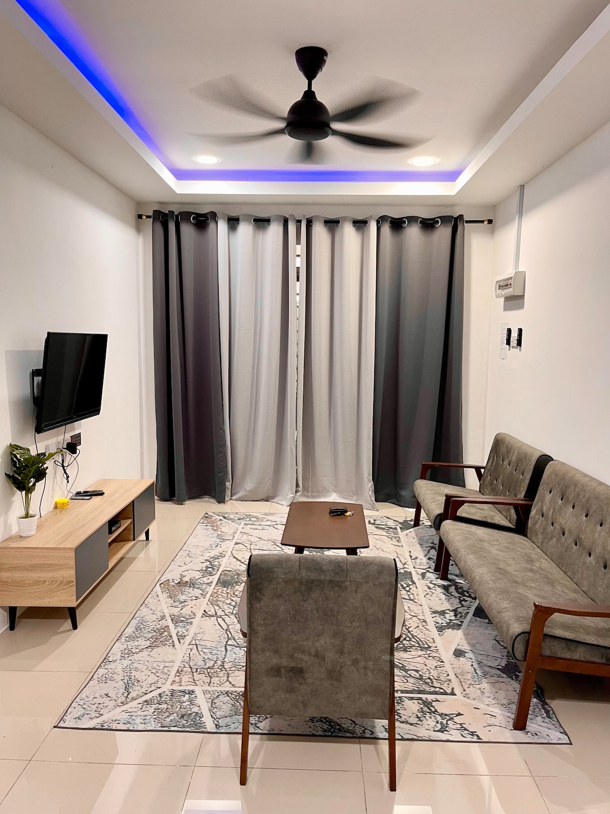 Rumah teres setingkat. 3 bilik tidur, 2 bilik air. Semua bilik tidur ada penghawa dingin. Boleh muat 6 hingga 8 orang. Unifi fiber percuma. Televisyen bersama Disney Plus, Prime Video. Ruang dapur yang luas dan selesa. Set kelengkapan dapur disediakan. Mempunyai mesin basuh, Laundry area dan sterika. Berhadapan taman permainan sesuai untuk penginapan keluarga yang ada anak kecil. ⛔❌ Merokok, No alcohol, haiwan peliharaan, aktiviti kenduri, dan seumpamanya tidak di benarkan.