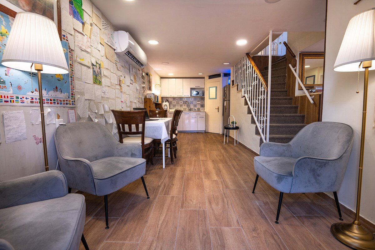 Alójate en Eden Manor, una rara mansión otomana en el corazón de Jerusalén. A solo 1 minuto del Instituto Shalom Hartman, a 5 minutos de Mamilla y a 10 minutos de la Ciudad Vieja, ofrece una mezcla única de encanto histórico y un exuberante oasis verde. Al igual que en un hotel donde las habitaciones comparten un comedor, aquí las 4 habitaciones comparten una cocina totalmente equipada y un patio soleado debajo de un antiguo olivo, el lugar perfecto para tu café de la mañana. Disfruta de la serenidad del campo en la ciudad.