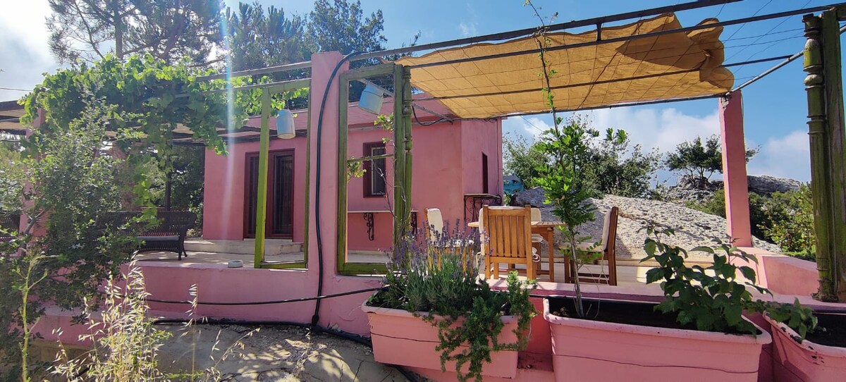 Esta colorida casa de un dormitorio es cómoda, tranquila con una maravillosa vista a la montaña, piscina y jardín.perfecto para la relajación y la meditación . ubicado entre saida y jezin en el pueblo joun junto a der mokhales .puede visitar el templo eshmun y el castillo lady stanhope, valle besre, tiene un hermoso bosque para hacer senderismo .
