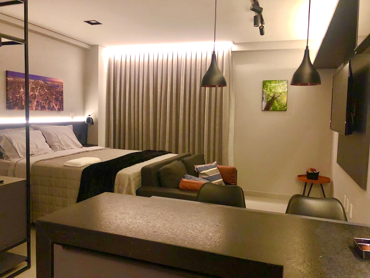 Estudio/loft con un espacio único, moderno y elegante, totalmente equipado (cocina, artículos de cama y baño), fácil registro (conserje las 24 horas y llave digital), estacionamiento rotativo disponible (espacio de estacionamiento cubierto). Excelente ubicación (Bessa), cerca del centro comercial, restaurantes, farmacias, supermercados, bancos, gasolineras y algunos de los mejores lugares de interés de la ciudad. Ideal para aquellos que quieren pasar una temporada frente a una de las mejores playas del estado.