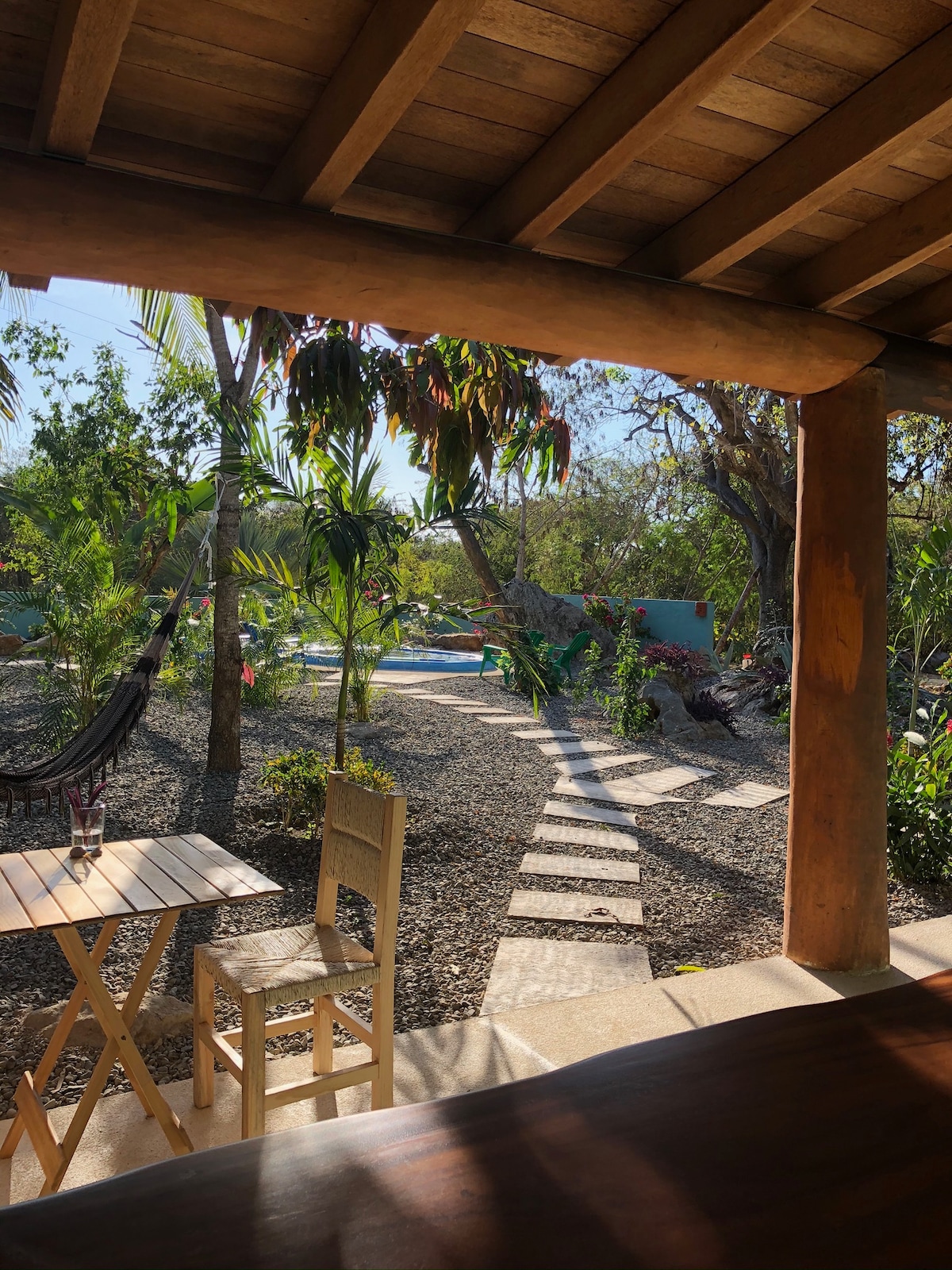 Bienvenidos a nuestra casita de tierra, perfecta para dos personas que buscan una escapada tranquila en la playa. Ubicada en una zona tranquila y rodeada de naturaleza, con espacios abiertos que se integran armoniosamente con el entorno natural. Ubicada a solo unos pasos del acceso al point break, ideal para atrapar la olas todo el día. Perfecta para disfrutar de la tranquilidad de la zona residencial y, a solo dos minutos a caminando, está el área más activa del pueblo y los restaurantes.