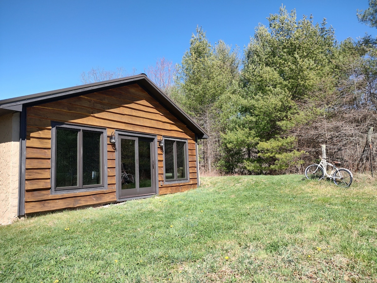 Hikers, Mountain Bikers, and Adventurers; Come relax in our mid-century modern guest house that borders the Pisgah National Forest! Y'all, we have such a great yard! We have an apple orchard, garden, a fire pit, private hiking and mtn biking trails straight out of the backyard and into the national forest, along with a kids bike pump track. Luxurious amenities throughout the house along with vintage books, games, and record player. We welcome guests from all walks of life! Adventure awaits!