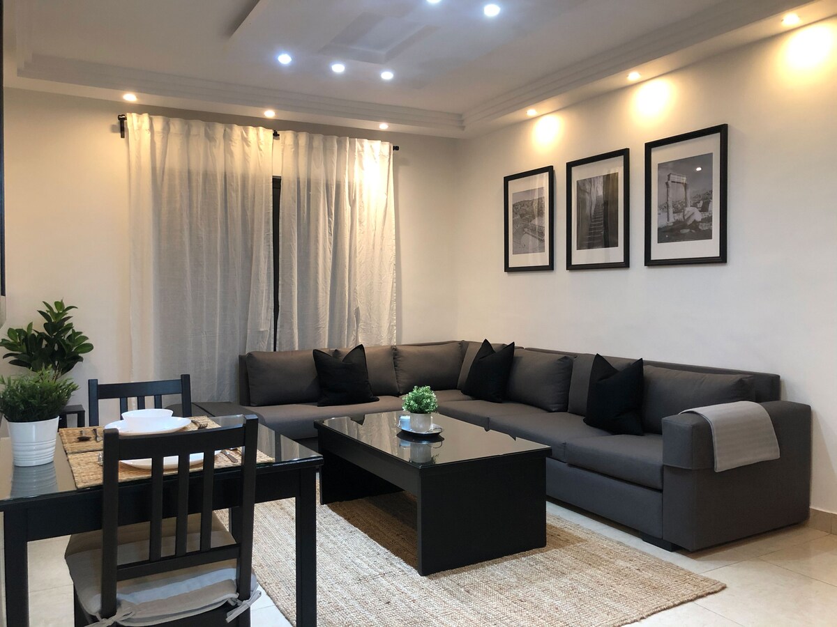Welcome to our Amman cozy and tranquil one-bedroom apartment, perfectly designed for relaxation and comfort. Nestled in a peaceful corner of the city, this fully equipped apartment offers everything you need for a seamless stay. Surrounded by quaint cafes, lush parks, and friendly local shops, you’ll find yourself immersed in a genuinely peaceful atmosphere. You'll find all kinds of transportation nearby, including a central bus station just a short 10-minute walk away.