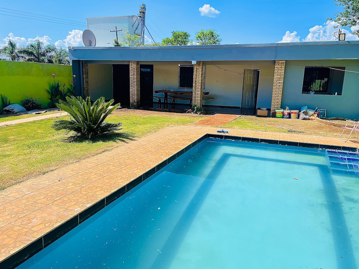 Fantástico lugar con muchas zonas para divertirse. Alquiler exclusivo para una pareja, familia o amigos. Ideado para disfrutar de lindos días en contacto con la naturaleza. Disfrutarás de un terreno de 15000m2. con 90% pasto natural, piscina 8x4, quincho kapi’i con parrilla, tatakua, mesa rústica p/ 15 pers., espacio para camping, cancha voley, fútbol, 4 puntos para toma de fotos. Disfrutarás del sonido de pájaros, hermosos atardeceres y amaneceres del sol, noches de linda luna y estrellas.