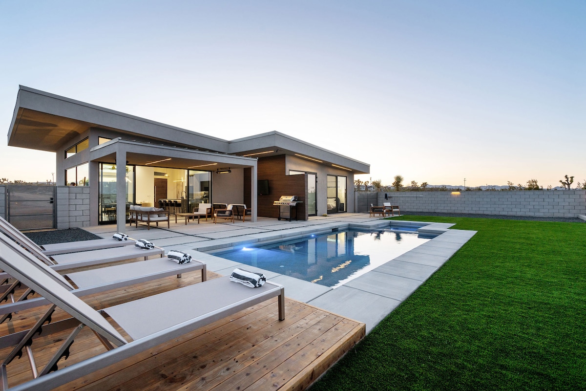 Desert Bloom • Nueva casa moderna, bañera de hidromasaje, piscina de inmersión
