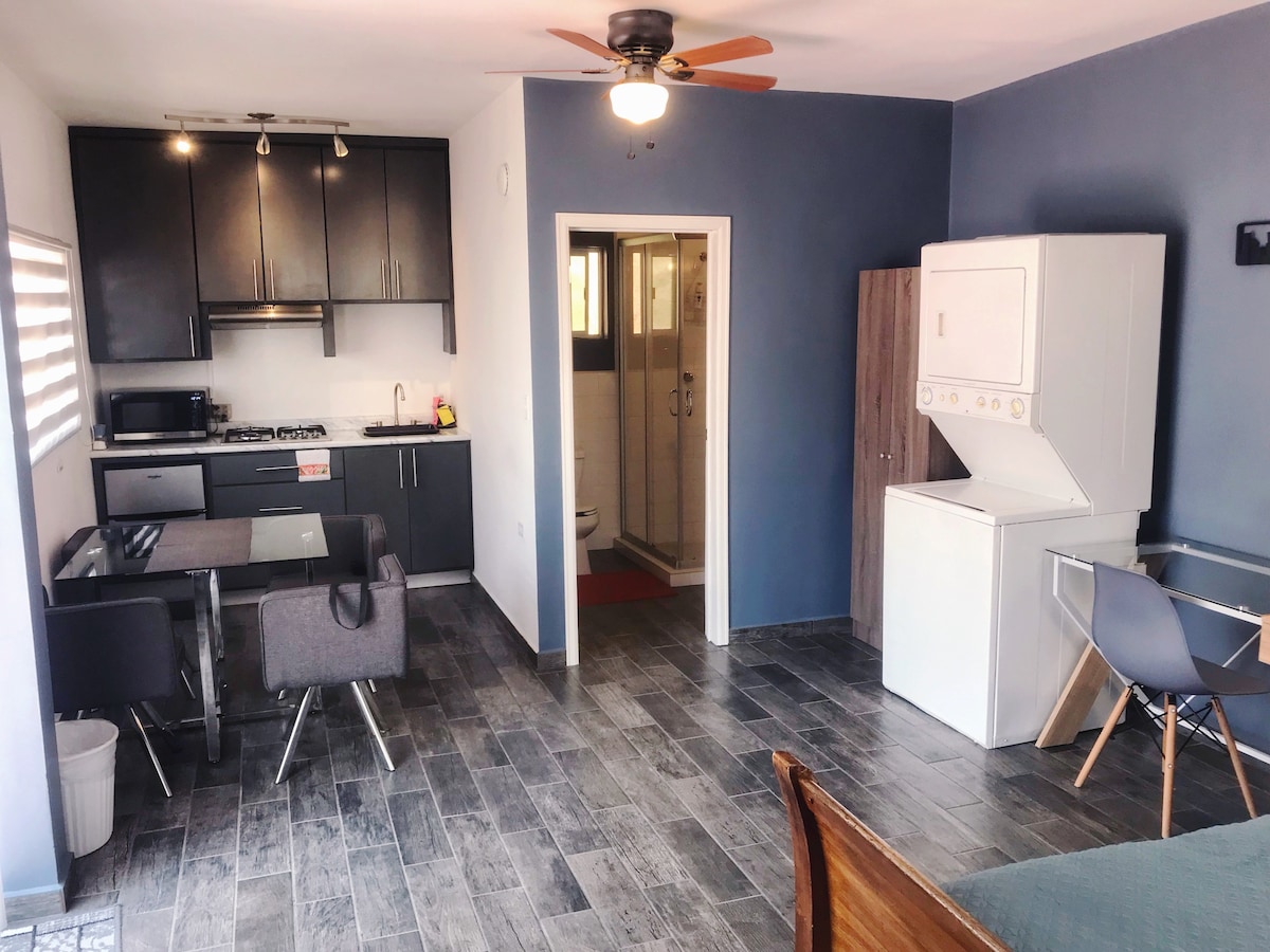 Hermoso loft ubicado a un par de km del consulado americano, la zona hotelera, Parque Central, Central de Autobuses y centro comercial Las Misiones. El espacio cuenta con una cama Queen, cocina integral con parrilla, un microondas y un mini refrigerador, un centro de lavado, una Smart tv y un espacio para trabajar a distancia con su escritorio. En el exterior hay una zona común, con espacio para hasta 2 vehículos, cuenta con asador, mesa de patio y también un par de Co-Anfitriones perrunos.