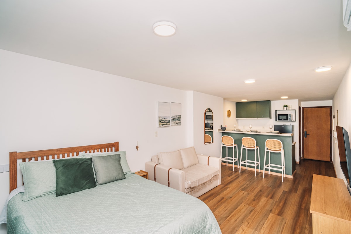 * Estudio muy completo en el centro *Siente la comodidad y calidez de tu alojamiento en el Centro Juiz de Fora, ya sea para descansar o trabajar, con internet de alta velocidad. *Habitación Tiene 1 cama doble súper cómoda. 02 alfombrillas individuales Aire acondicionado * Sofá cama en la sala de estar combinada con la cocina. * Cocina completa, equipada con sartenes, juego de cena, cafetera y todo lo que necesitas para pasar días increíbles. * Ambiente acogedor y bien ubicado en el corazón de la ciudad