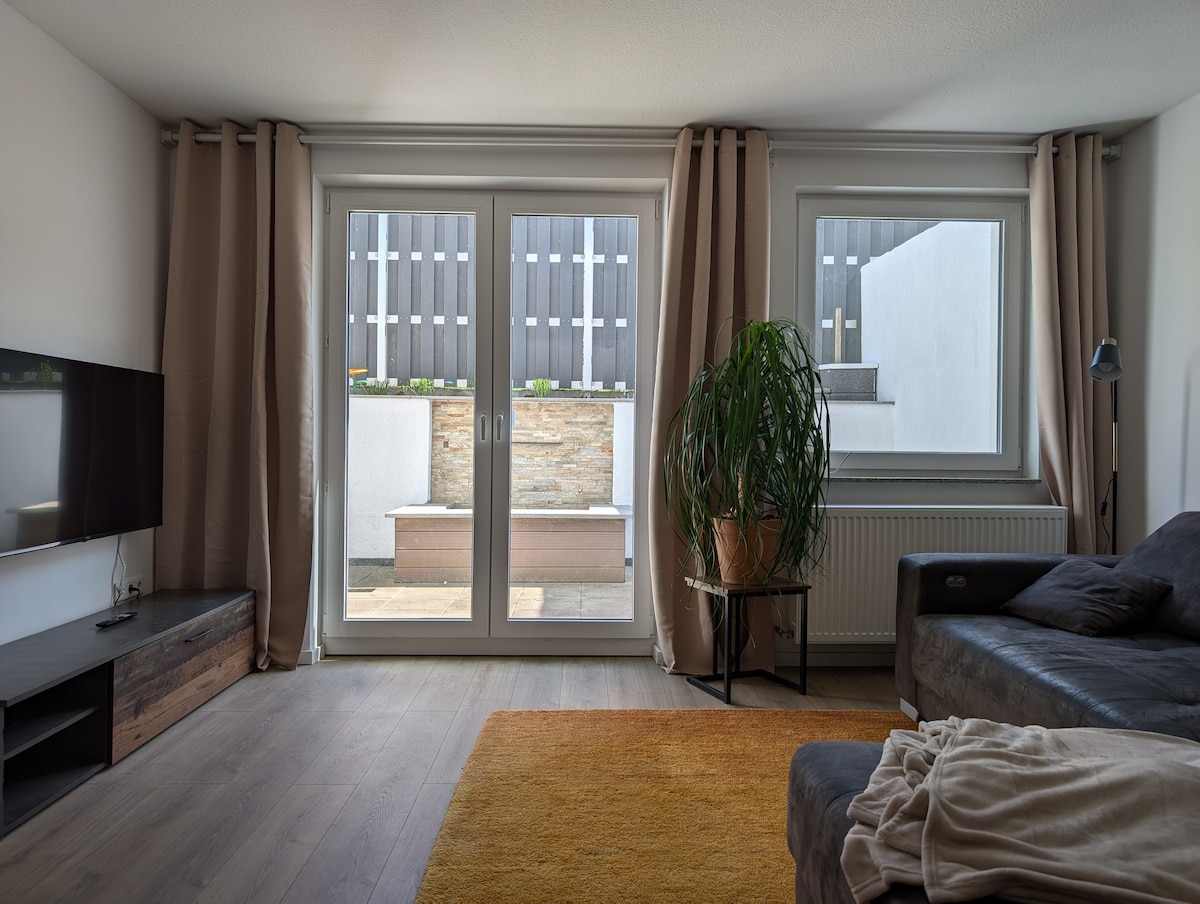 Apartamento luminoso con terraza en el centro de Jülich Departamento de 2 habitaciones inundado de luz en el corazón de Jülich. El apartamento tiene un dormitorio, una sala de estar con sofá cama y cocina totalmente equipada (campo de inducción, lavavajillas, cafetera, hervidor). Lo más destacado es la espaciosa terraza, ideal para relajarse. Ubicación perfecta con tiendas y restaurantes en las inmediaciones. Ideal para viajeros de negocios y privados.