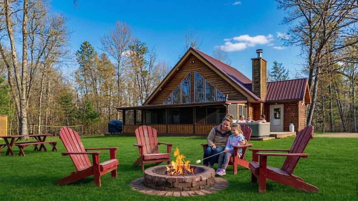 Esta cómoda casa de estilo de registro, con 2.600 pies cuadrados de lujo moderno, cuenta con un plano cálido y acogedor que ofrece 4 dormitorios y 2 baños completos y está lista para hospedarte a ti, a tu familia y amigos para una escapada inolvidable a Wisconsin. La propiedad se encuentra en 4 acres de bosque de pinos con un estanque privado en el patio trasero. ¡Detrás de la propiedad hay kilómetros de bosque de pinos salvajes! Wifi de alta velocidad y monitor para trabajo remoto. El inquilino principal debe tener al menos 25 años.