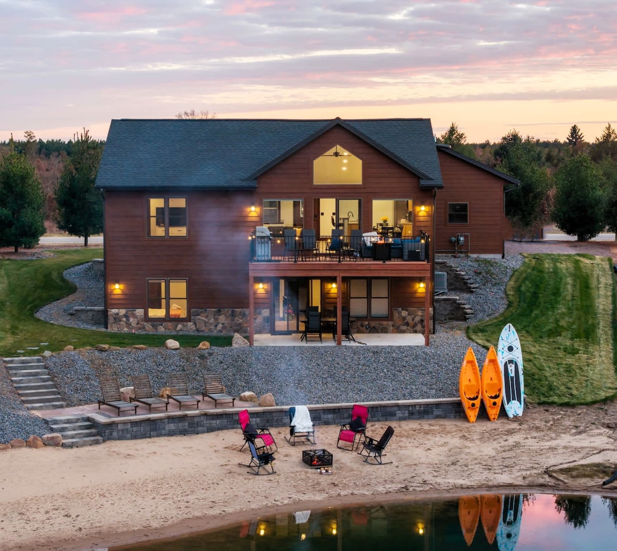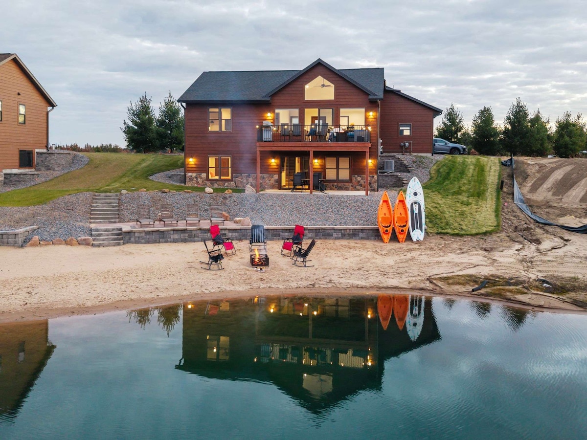 Experimenta el mejor refugio frente a la playa con una impresionante vista al lago, un lujoso jacuzzi, un porche protegido, una playa de arena privada y una acogedora chimenea al aire libre bajo las estrellas. WisCottage es un lujoso alquiler vacacional de 5 dormitorios que promete una escapada inolvidable con impresionantes vistas al lago, servicios indulgentes e infinitas oportunidades para la relajación y la aventura. Este refugio de primera línea de playa está situado cerca de las pintorescas orillas del lago Castle Rock y Wisconsin Dells.