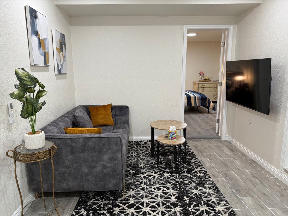 Disfruta de una experiencia elegante en este lugar céntrico. Situada en la hermosa comunidad de Riverside, el tranquilo espacio privado incluye un dormitorio de diseño simplista con baño privado. El estudio tiene una cama tamaño queen muy cómoda y relajante, un televisor (Netflix incluido) y un área de refrigerio elegante que demuestre un microondas, un refrigerador y un Keurig para tu conveniencia.