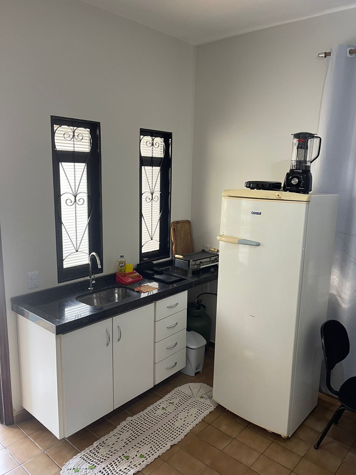 Sala integrada con cocina - sofá cama. - Cocina -geladeira - Utensilios para cocina. -lavanderia Suite con aire acondicionado nuevo -cama casal - armario doble - TV de 43 pulgadas con antena y smart - Garaje cerrado - Wifi. - Cámara de seguridad -Electronic Portão ¡Muebles e instalaciones nuevos! Ven y mira 🥰 El lugar tiene 4 apartamentos tipo estudio.