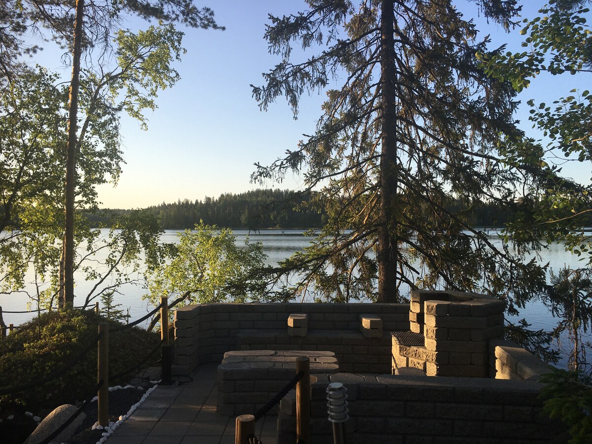 Una acogedora cabaña entre pinos y el lago a solo 2 pasos de Saimaa. Es bastante pequeña por dentro (30 metros cuadrados) con una gran terraza abierta y un césped verde delante. Hay una cama loft para 2 personas con vistas, una pequeña cocina, chimenea y sauna de leña dentro de la cabaña. Es genial empezar el día nadando temprano y hacer yoga/desayunar en la terraza escuchando el canto de los pájaros y terminar el día con una copa de vino tomando fotos de una impresionante puesta de sol.