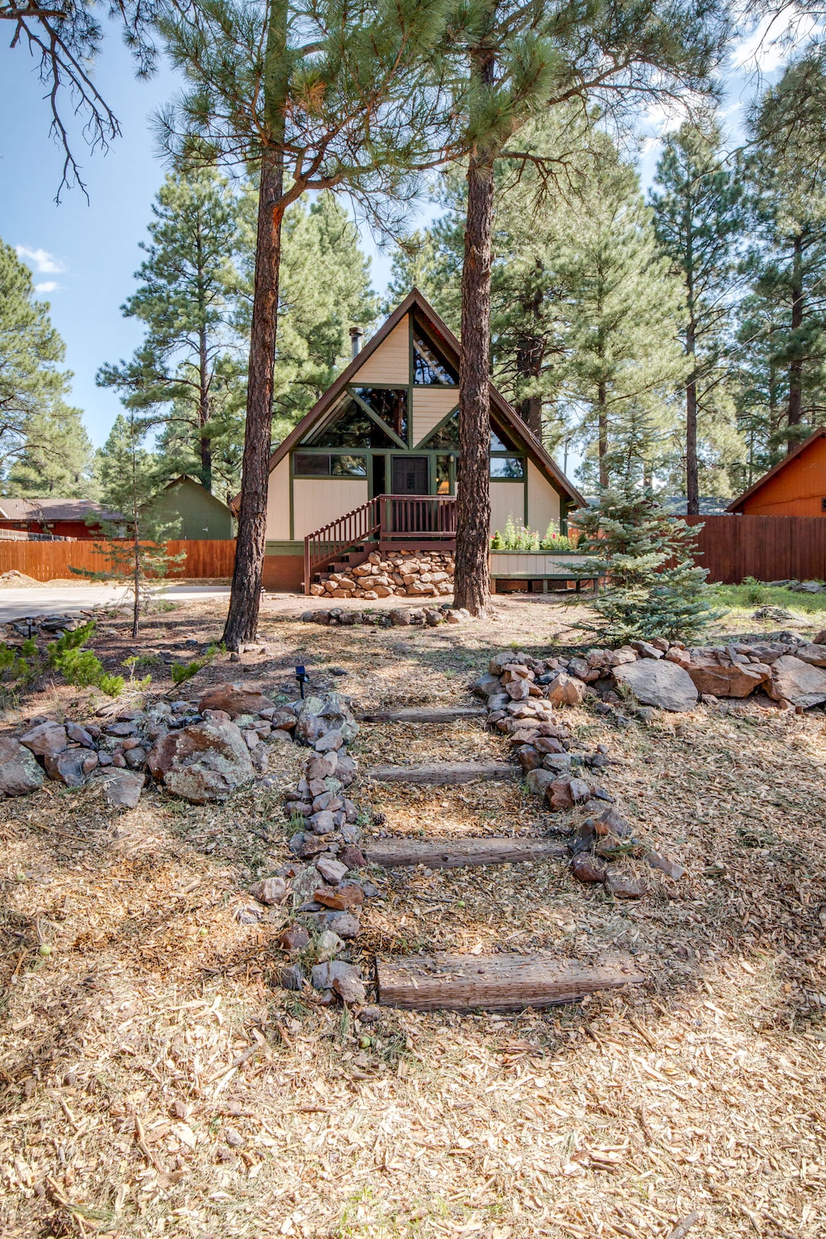 Ubicada en las tranquilas colinas de Kachina Village se encuentra esta cabaña de lujo con estructura en A de 1972 renovada. Con 600 pies cuadrados de espacio en la terraza, es el lugar perfecto para relajarse, descansar y respirar el aire fresco de la montaña. Situado a solo 10 minutos de Flagstaff, tendrás fácil acceso a todo lo que necesites, pero estarás lo suficientemente lejos de la ciudad como para disfrutar de un poco de paz y tranquilidad. Los espacios interiores y exteriores han sido diseñados para ser cálidos y acogedores, para que te sientas como en casa y estés listo para instalarte y relajarte.