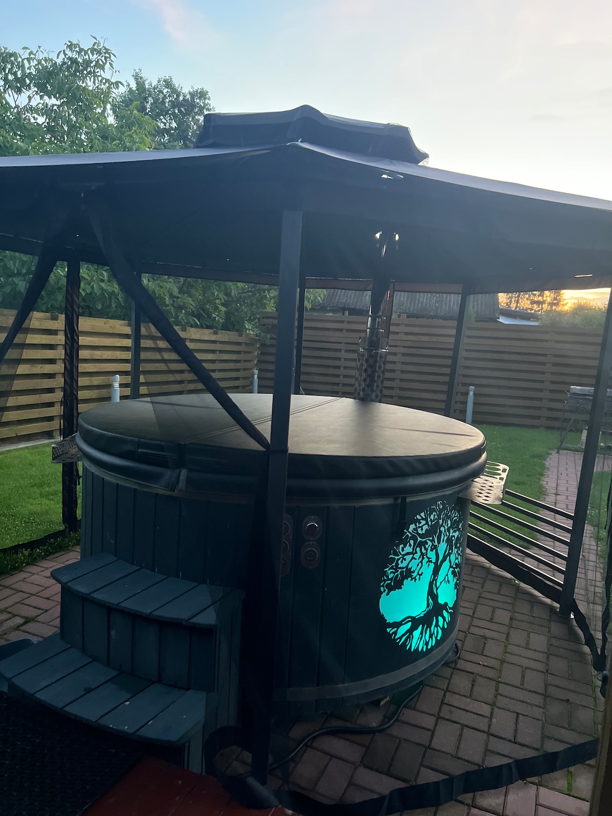 Casa de sauna cerca de Mažeikiai. La ubicación se encuentra en la aldea de Zibikai, pero lejos del asentamiento, lo suficientemente privada. La cabaña cuenta con todas las comodidades, buena agua del grifo, hervidor de agua, placa calefactora, platos. En la terraza al aire libre, descansarás cómodamente en las bolsas de asientos, admirarás las vistas de la naturaleza. Hay una gran bañera de hidromasaje junto a la terraza con capacidad para 8 personas por un cargo adicional de 50 euros. Cuando te mudes en el flagelo, podrás caer en un refrescante chapuzón en el arroyo Hay una cancha de voleibol al aire libre.