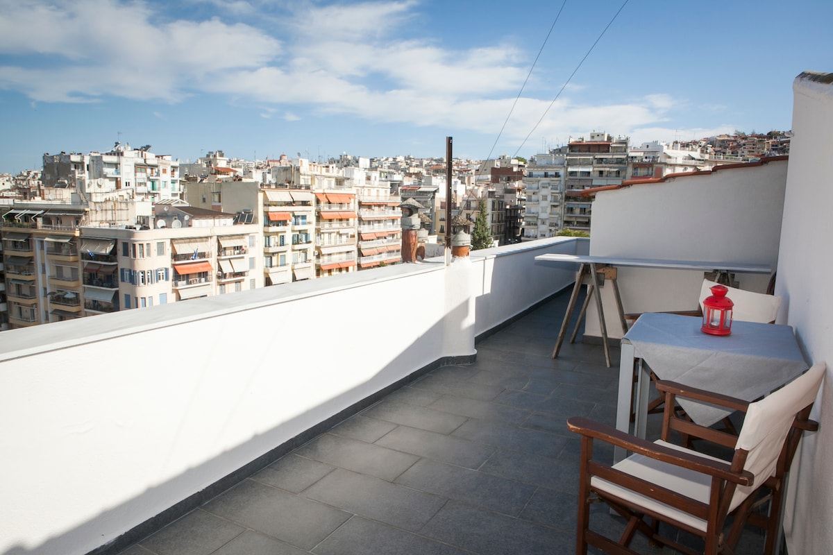Un cómodo ático en la avenida Vasileos Georgiou, muy cerca del centro, con vistas a los Thermaikos. Distancias (a pie): costa - 1' | Ayuntamiento - 2' | Museo Arqueológico - 4' | Museo Bizantino - 5' | Torre Blanca - 7' | TIF HELEXPO - 4' | Y.M.C.A. - 5'. Estación de autobuses frente al edificio. (autobús cada 3 minutos) - También el servicio de traslado al aeropuerto se detiene allí. También hay una parada de taxi junto a ella. Supermercados, cafés, restaurantes, hornos, pastelerías, farmacias, bancos cerca del edificio