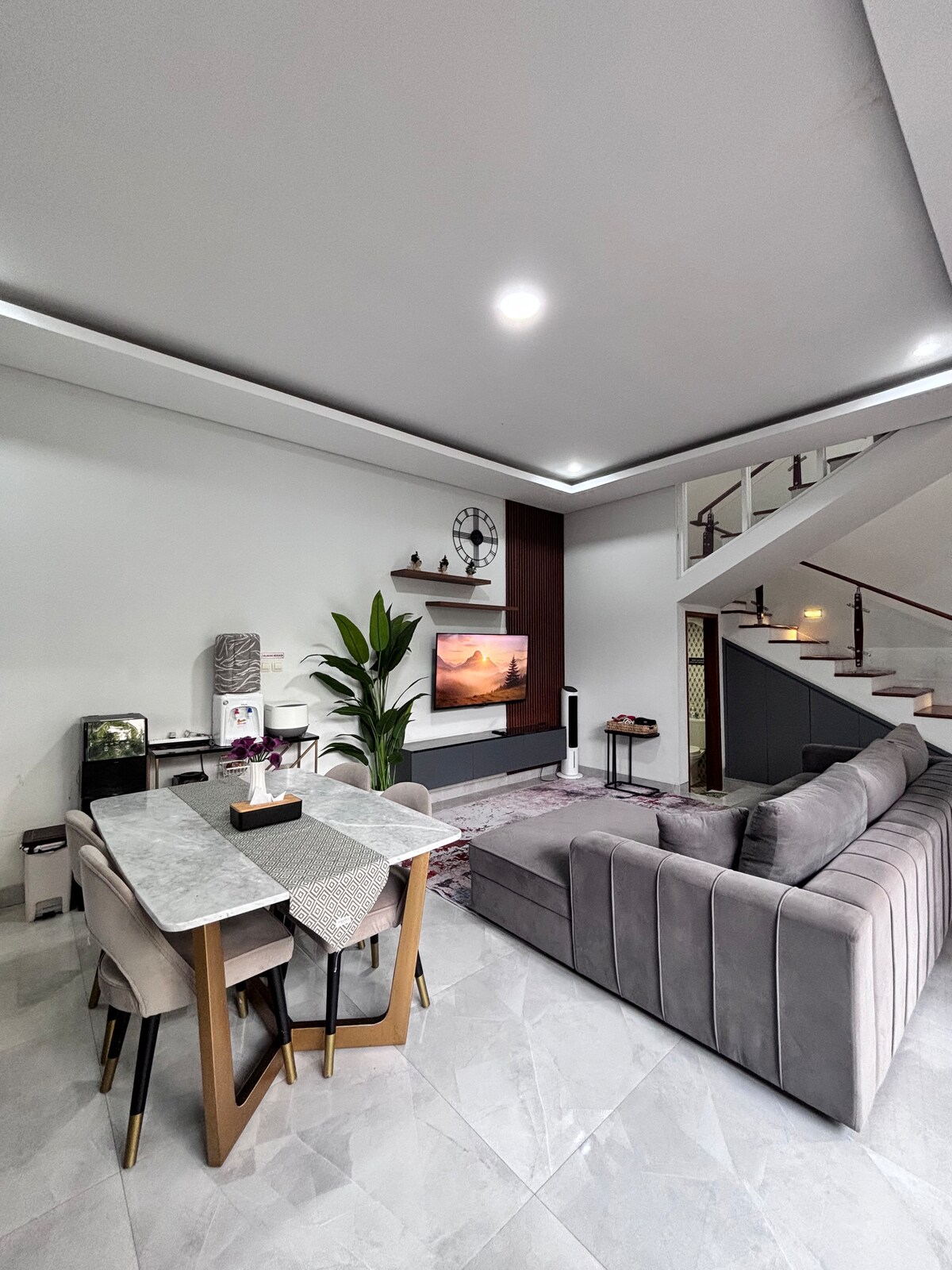 La casa sigue nueva, terminada en marzo de 2024. Una casa cómoda para relajarse y descansar con la familia. Ubicados en una zona residencial, tú y tu familia pueden sentir un entorno limpio, hermoso y tranquilo. En nuestra casa, puedes encontrar: - 3 dormitorios con aire acondicionado. - 1 baño con calentador de agua caliente. - 1 baño estándar. - Sala de estar con sofá cama. - Televisión inteligente en la habitación familiar de 43 pulgadas + Netflix + WiFi. - Cocina - primeros auxilios - Porche - Cochera para 2 coches.