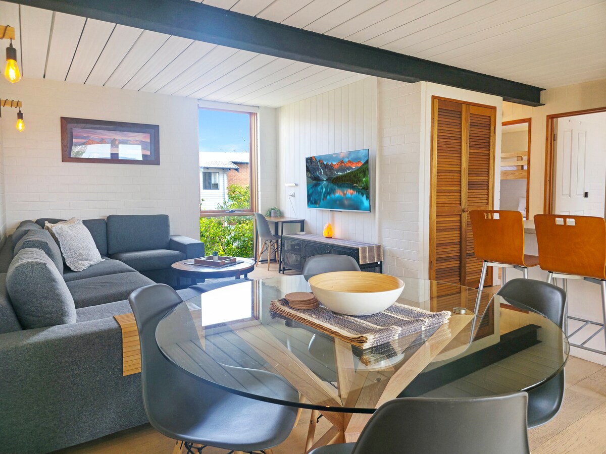 Our open plan Apartment in Jindabyne is a wonderful place for your family and friends to relax and enjoy the views of Lake Jindabyne. Surrounded by natural bushland while only being a 1 minutes drive to the town center! Resorts are only 30mins away. A beautifully renovated 1 bedroom apartment. With new furnishings throughout andThis apartment boasts a main bedroom with beautifully appointed queen bed and wardrobe, and a large pull out double sofa bed and secure mountain bike storage on request.