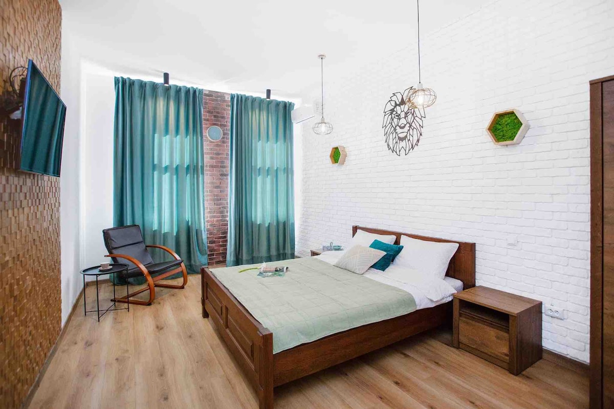 Diseñado para la comodidad de un viajero moderno, este lugar te hará sentir como en casa. Hemos dado un aspecto moderno a este espacio, al tiempo que hemos conservado las características originales de la construcción del siglo XIX. Esperamos que los huéspedes comprendan que los cortes de energía debidos a la situación actual en Ucrania están fuera de nuestro control. Se agregaron persianas artesanales y materiales originales en el techo para que sea único y acogedor.