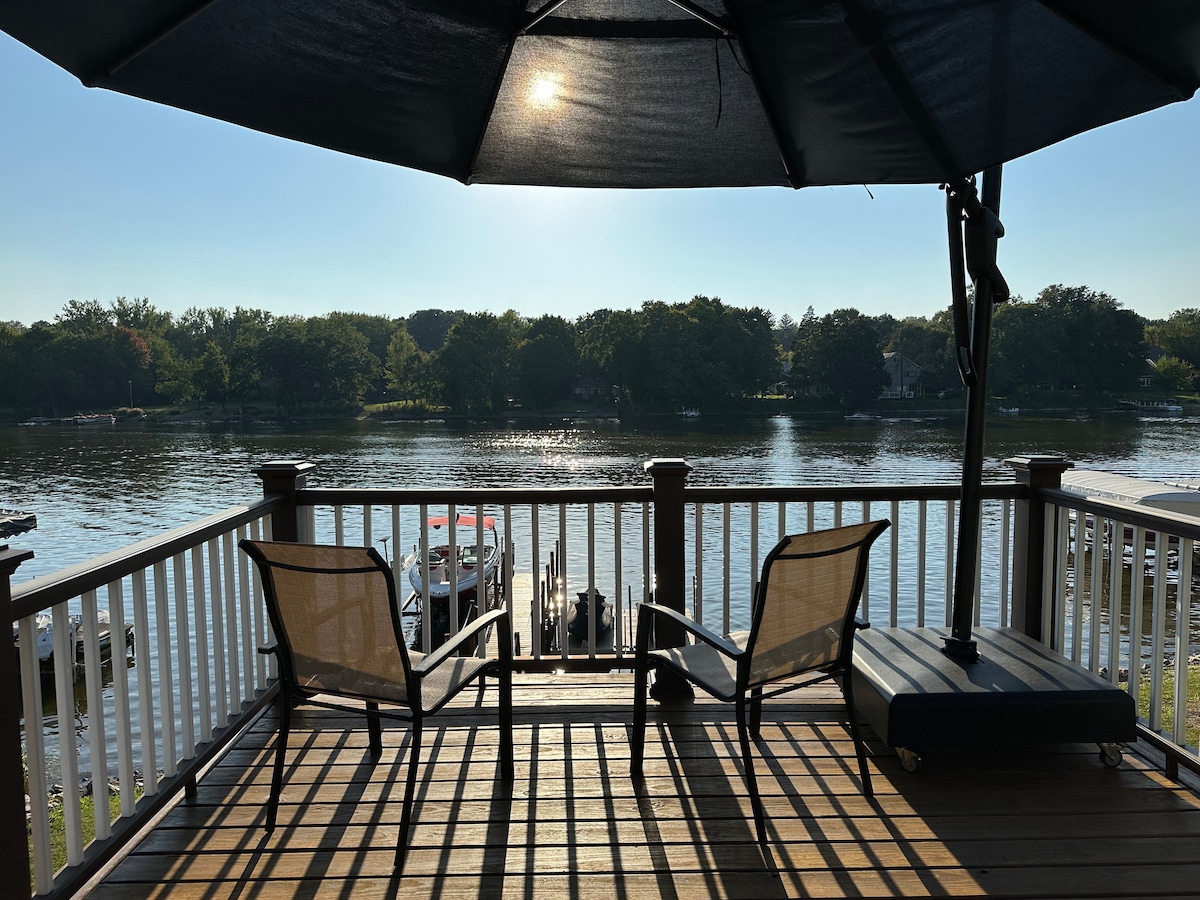 Water’s Edge Retreat – Riverfront Escape with Private Beach & Dock Welcome to Water’s Edge Retreat, a serene riverfront getaway tucked along a quiet street in St. Charles, Illinois. This charming ranch style home offers the perfect blend of comfort, nature, and relaxation. Complete with a private beach, a beautiful wooden dock with rope railings, and a spacious deck ideal for entertaining or watching breathtaking sunsets over the water.