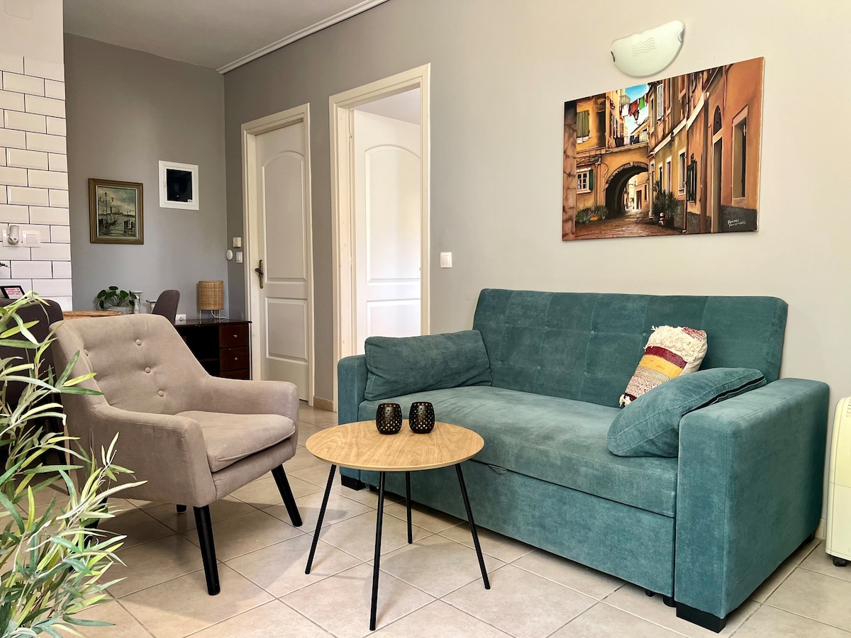 ¡Te damos la bienvenida a nuestro elegante loft en Garitsa, a pocos minutos del aeropuerto de Corfú! Perfecto para viajeros y parejas, este acogedor refugio cuenta con un hermoso dormitorio, una cocina totalmente equipada y un sofá cama de nivel superior ideal para relajarse o alojar a un huésped adicional. Con un ambiente cálido y acogedor y servicios cuidados, te sentirás como en casa. Situado en un lugar tranquilo y céntrico, está a poca distancia a pie de la bahía de Garitsa, cafés locales y tiendas perfectas para explorar Corfú a pie.