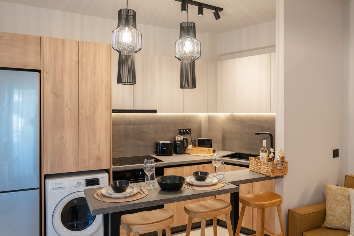 Filoxenia Bnb te da la bienvenida a la suite Blue Waters Premium | Kos, un epítome de lujo y sofisticación en el corazón de Kos. Experimenta el pináculo de la vida moderna en esta suite ejecutiva, donde la elegancia contemporánea y el confort refinado se fusionan a la perfección. Esta nueva suite de última generación redefine la elegancia y la sofisticación, ofreciendo una experiencia residencial inigualable que combina armoniosamente el diseño moderno con un entorno impresionante.