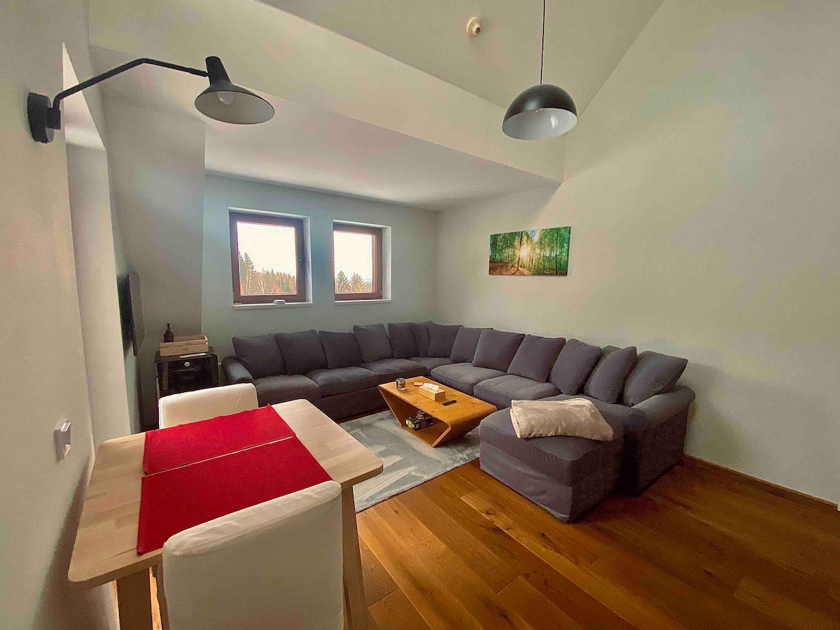Apartamento espacioso y aireado que satisfará todos sus deseos de alojamiento moderno con su propio spa para hasta 4 personas. Apartamento con cama de matrimonio tamaño king (180x200) y sofá cama en el salón para 2 personas, cocina americana y terraza con bañera de hidromasaje. Desde el jacuzzi podrá disfrutar de una vista panorámica de las montañas circundantes. ¿Qué más se puede pedir? Ponga los pies sobre la mesa y relájese en este alojamiento tranquilo y elegante. El edificio también incluye una sauna finlandesa.
