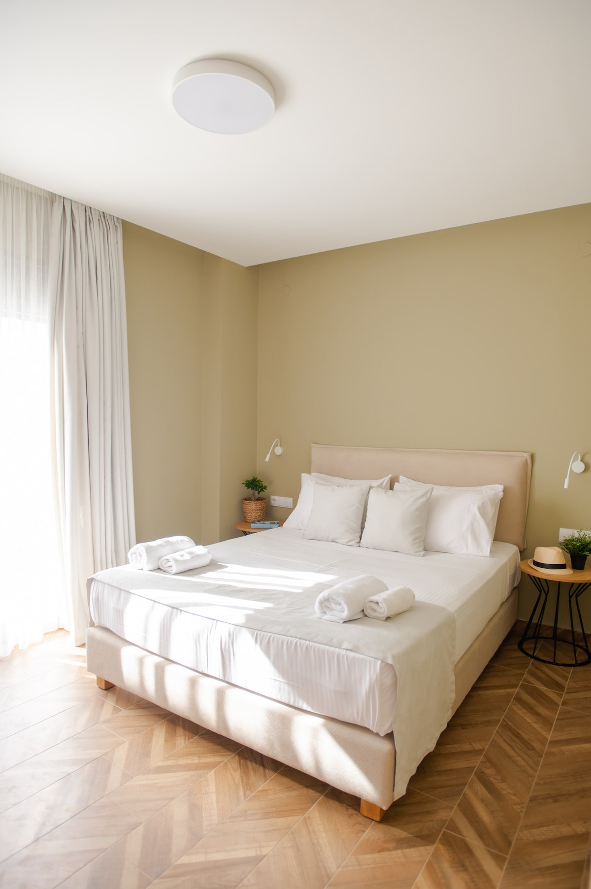 ¡Loft elegante y minimalista de 90 metros cuadrados, renovado en mayo de 2019, ubicado sobre el puerto y castillo de Heraclión con 2 balcones privados con vistas al mar y al jardín! ¡Dos dormitorios grandes ofrecen camas tamaño king con colchones ecológicos de aloe vera para dormir profundamente! Mímate en el enorme sofá viendo Netflix a 58 pulgadas de televisión. ¡La cocina está totalmente equipada con inducción y horno modernos!¡Lavadora y secadora para tus comodidades! ¡El baño es absolutamente minimalista y espacioso!¡Eco-Inverter Klima y estacionamiento gratuito!