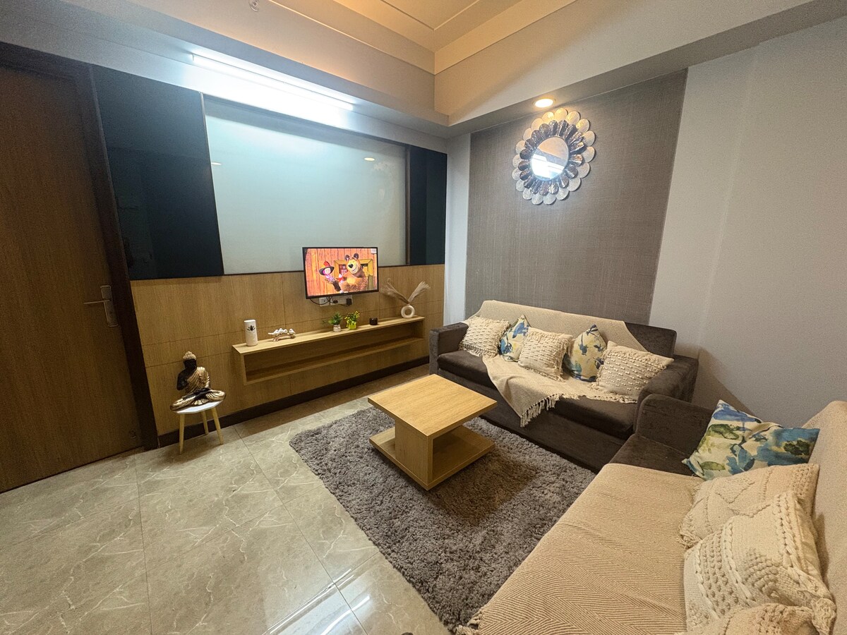 El retiro para parejas favorito de Gurgaon en Sapphire 83. Pide pasteles personalizados, ramos de flores, decoración para la habitación y fotografías directamente a través de nuestro portal para huéspedes. Disfruta de una elegante sala de estar con libros y juegos, una cocina totalmente equipada y un hermoso dormitorio con TV/OTT. Trabaja o relájate con una estación de trabajo dedicada y wifi de más de 200 Mbps. Sal al balcón con vistas abiertas para disfrutar del horizonte. Ubicación estratégica cerca de la NH48, Dwarka Exp, SPR, Amex, Air India y TCS. A pocos pasos hay tiendas Inox, bares, restaurantes y un centro comercial con todo lo necesario.