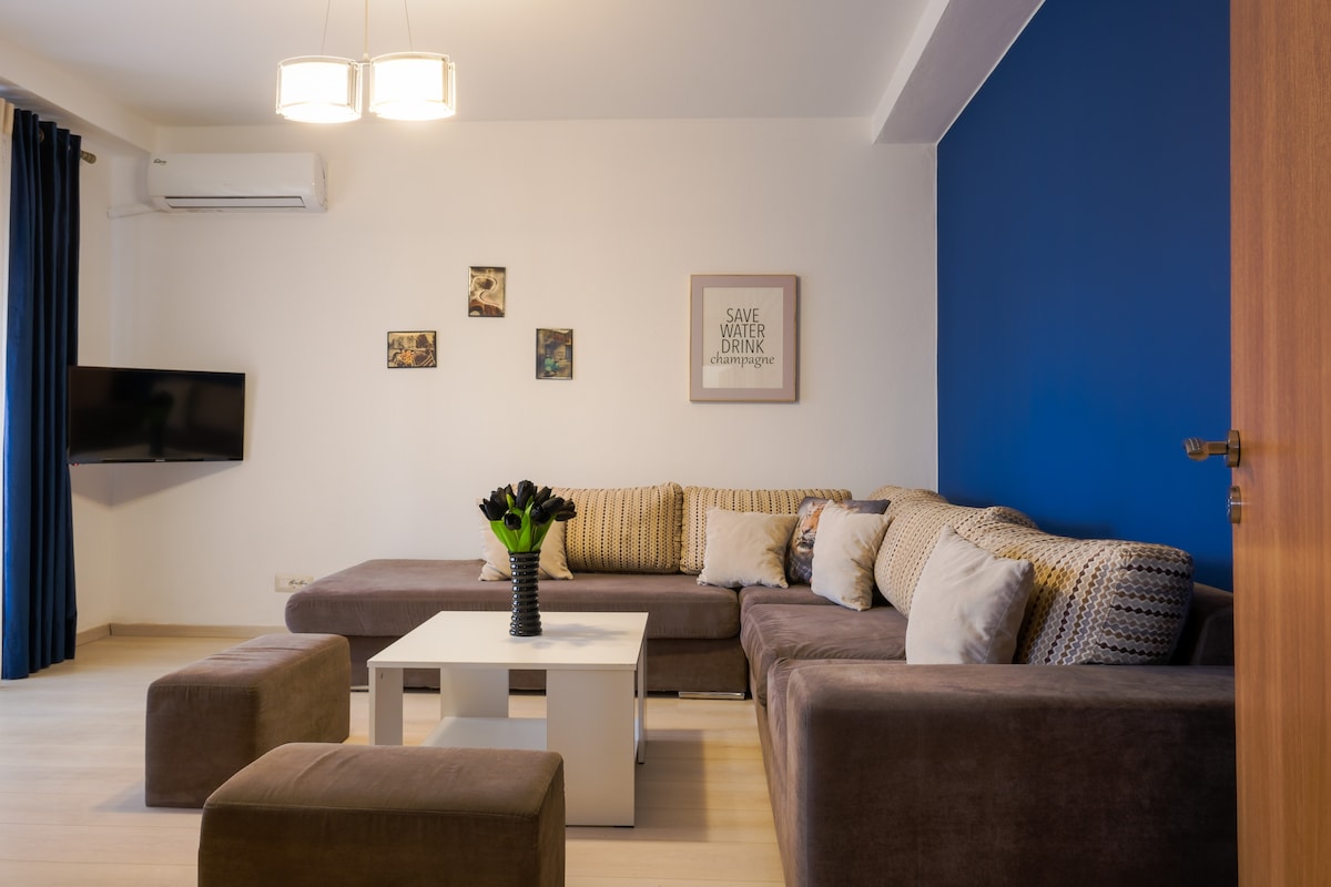 Estamos deseando recibirte en nuestro departamento ubicado en el centro de la ciudad, en uno de los mejores edificios residenciales de Tirana. Su comodidad te hará sentir en casa tan pronto como entres. Tiene una cocina totalmente equipada, un balcón muy bonito orientado al oeste con una bonita vista a la cancha de la planta baja, TV de pantalla plana, aire acondicionado, estacionamiento gratuito dentro del edificio. La residencia es muy tranquila, protegida de las concurridas calles de Tirana. El New Bazaar (Pazari i Ri en albanés) está a solo unos metros de distancia.